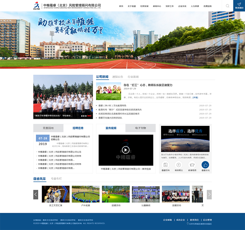 中精蕴睿(北京)风险管理顾问有限公司2013年,现有教职工及各科目教育专家80多人,致力于为各中小培训学校(机构) 提供教育相关政策咨询与指引、法律服务、人才引进与培养、师资队伍建设与培训、教学教研与学科创新、市场营销企划、文化 理念塑造与品牌输出的专业化教育管理全方位的综合服务。
